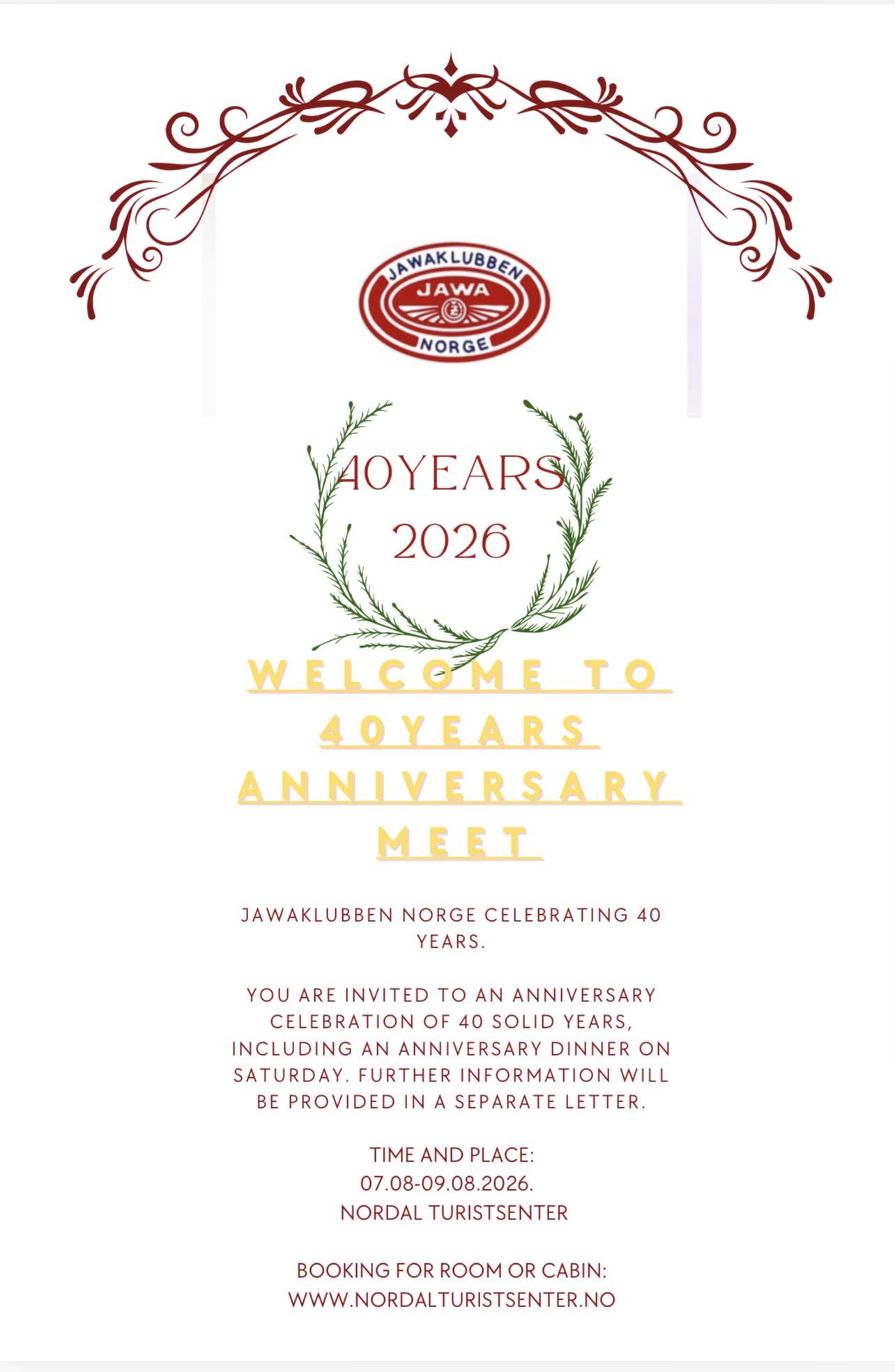 | 8.8.2026 | 🇳🇴 | 40th anniversary | JawaKlubben Norge poster |
